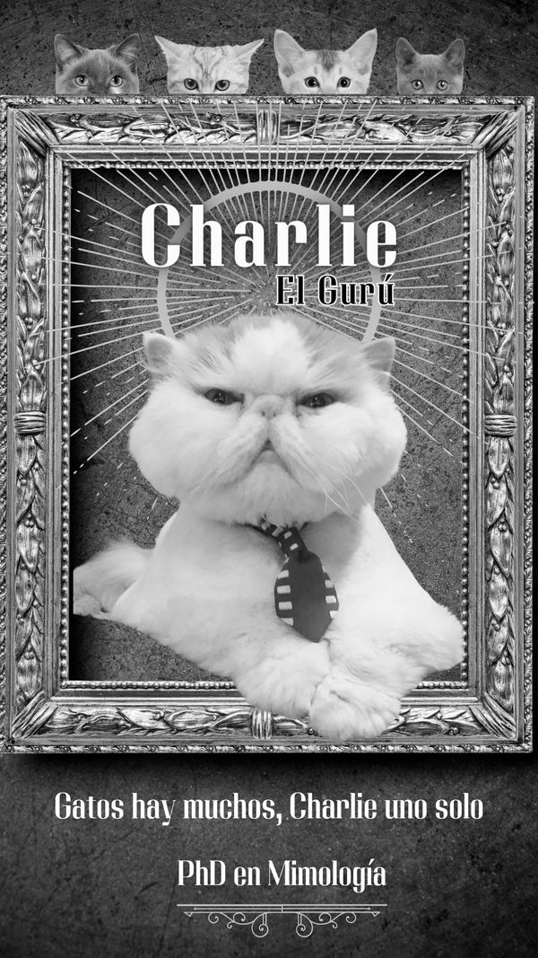 Charlie es un gurú de la Mimología y después de consumirse 6 de las 7 vidas que tiene todo gato, ha querido compartir con vosotros el secreto de la felicidad: Los mimitos.